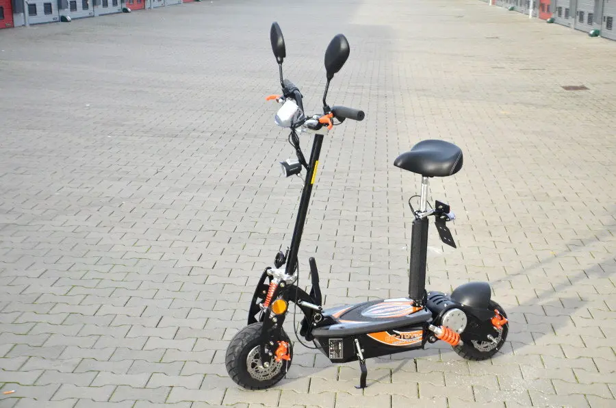 Elektro Scooter mit 1000W Leistung und 36V Akku. Ideale fortbewegungssystem für jeden. Er ist mit starkem Akku ausgestattet und mit seinem Elektroantrieb sehr leise.