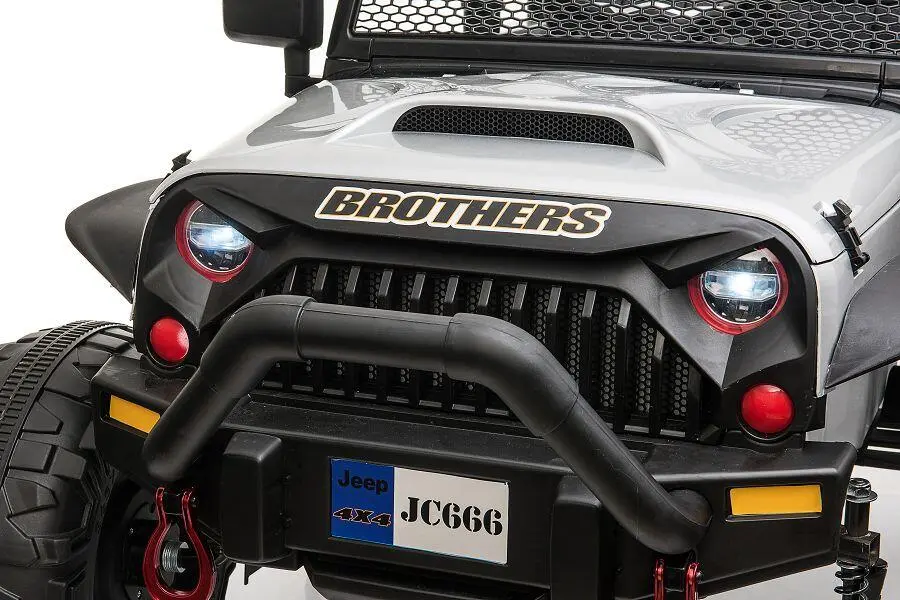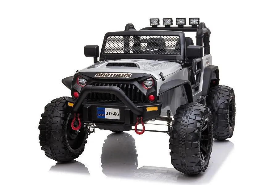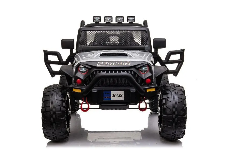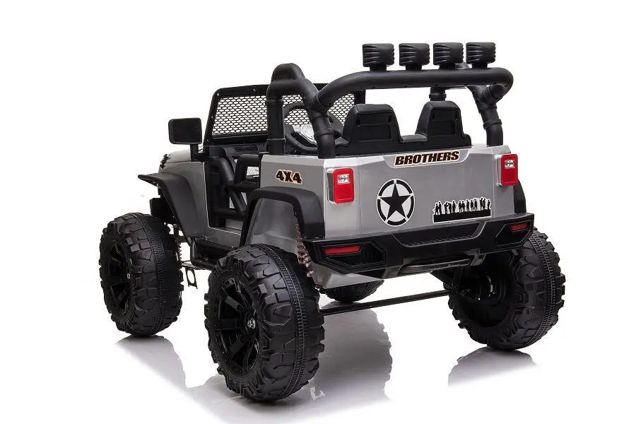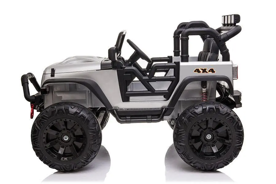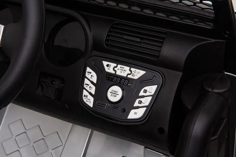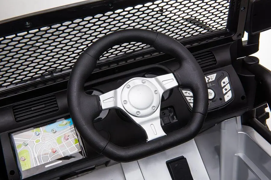 Wahlweise kann das Kind selbst mit Lenkrad und Gaspedal das Fahrzeug steuern oder Erwachsene nutzen die 2,4-GHz-4-Wege-Fernsteuerung, um das Fahrzeug zu kontrollieren. Ein MP3-Anschluss ist eingebaut, und der Sound kann reguliert werden. Mit den 2x 200W Elektromotoren hat das Fahrzeug genug Kraft, um Kinder mit einem Gewicht von bis zu 40 kg zu transportieren. Integrierte Scheinwerfer sorgen für zusätzliche Sichtbarkeit.